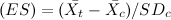 where ES is the Effective Size - means the benchmark how well prevention helped, X_t the "posttest mean of the treatment condition", X_c the "posttest mean of control condition" and SD_c the posttest standard deviation of the control condition. Their benchmark ist defined after Smith, Mary Lee, Gene V. Glass, and Thomas I. Miller. The benefits of psychotherapy. Baltimore: Johns Hopkins University Press, 1980: